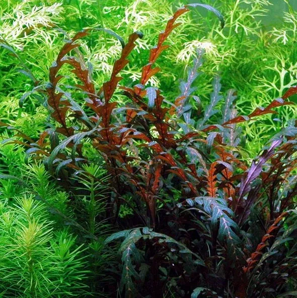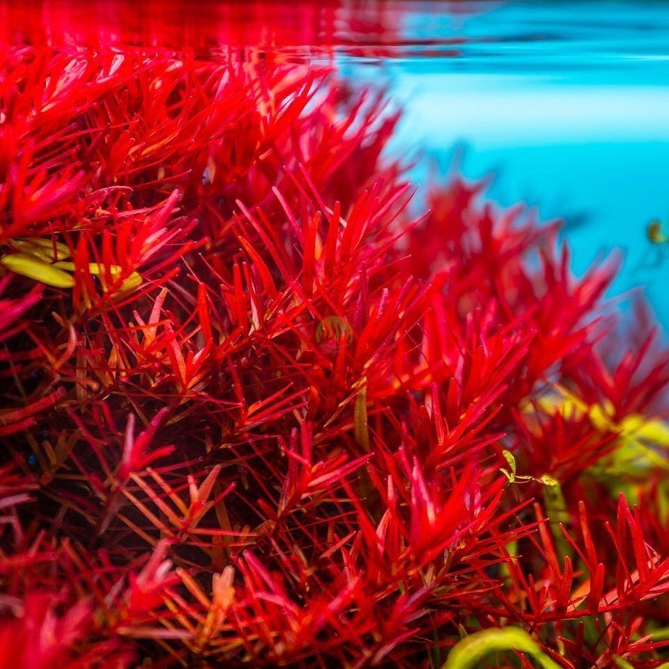 myriophyllum spicatum, gracias a su tallo rojizo y su intenso verde en hoja, podremos crear contrastes muy bonitos en nuestro emergido o en un acuario en sumergido.