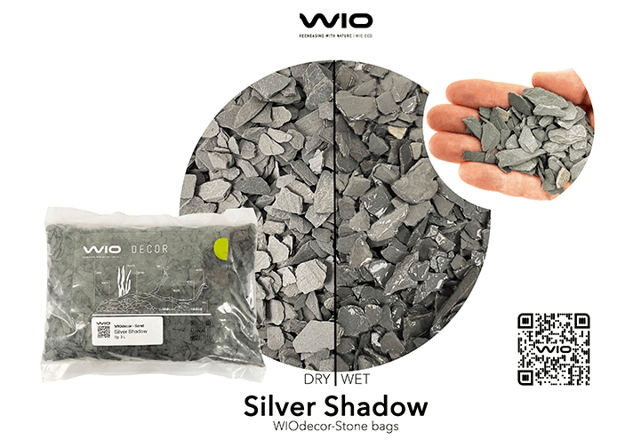 WIO SILVER SHADOW NANO ROCKS 3 LITROS , grava 100% natural con granulometría 5 ∼ 30 mm con aspecto de pizarra muy oscura.